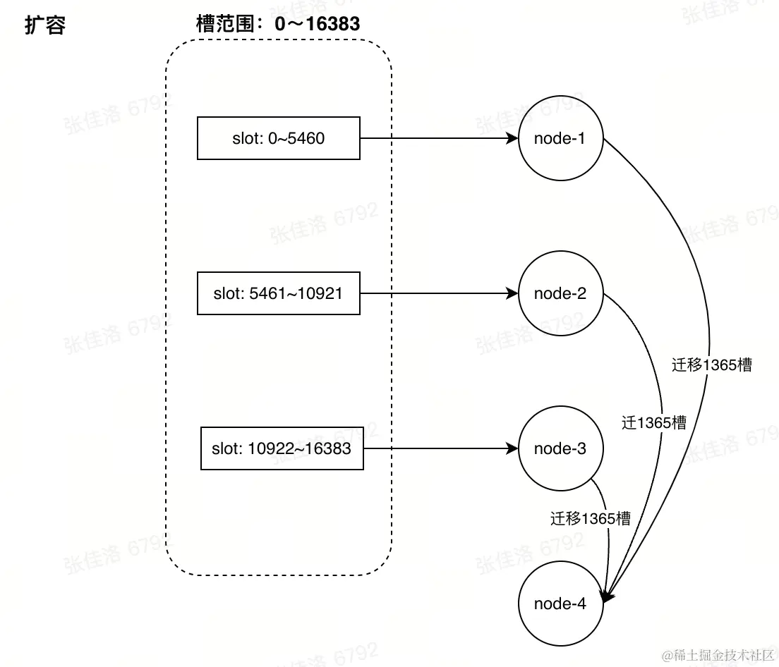 - 执行槽迁移,向新节点迁移数据