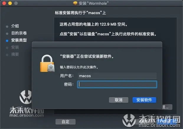 请输入用户密码安装Wormhole最新版,点击安装(没有设置用户密码的同学请忽略)