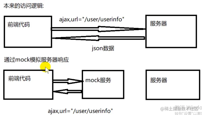 - 通常意义的mock指的是mock server,模拟服务端返回的接口数据,用于前端开发、第三方接口联调等