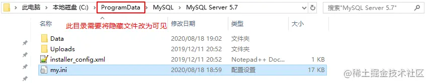 3.永久解决。找到此路径中的my.ini配置文件,并打开它!
