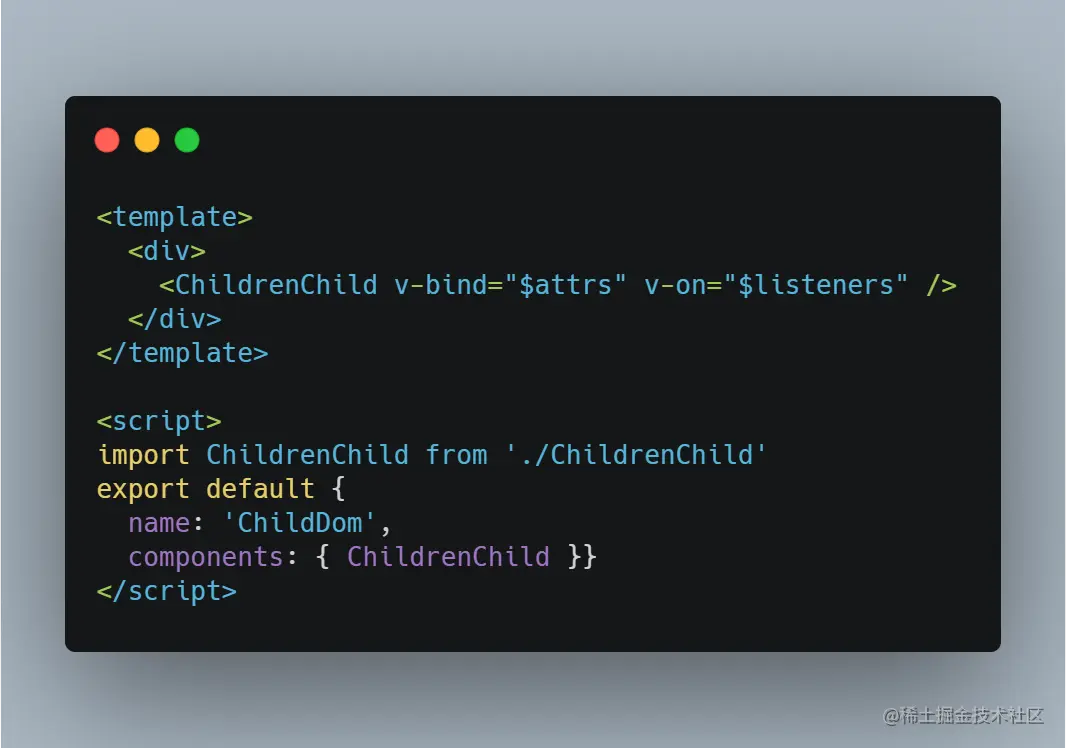 $attrs和$listener的使用 李成铭 2021-01-07 1,360 阅读1分钟 Vue2项目中跨组建通信方法有很多 比如eventbus或者provide inject, 这里记录下attrs和attrs和attrs和listener的使用情况 假设目前有三个组件A/B/C A是最上层组件 B为A的子组件 C为B的子组件 A>B>C A需要向C传值 而B用不到这个值 不需要props接收时 就可以使用attrs和attrs和attrs和listener A组件 当B组件使用了$listener A可以直接@C组件中的自定义事件 B组件 使用attr接收绑定给C组件 用attr接收绑定给C组件 用attr接收绑定给C组件 用listener接收C组件的方法 在A组件中直接使用 C组件