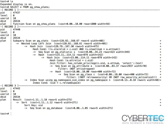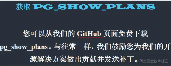 pg_show_plans是PostgreSQL的免费扩展,可以直接从我们的GitHub(github.com/cybertec-po…