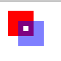 在这个例子中,蓝色矩形是绘制在红色矩形上面的。因为在绘制蓝色矩形前 globalAlpha 被设置成了 0.5,所以蓝色矩形就变成半透明了,从而可以透过它看到下面的红色矩形。