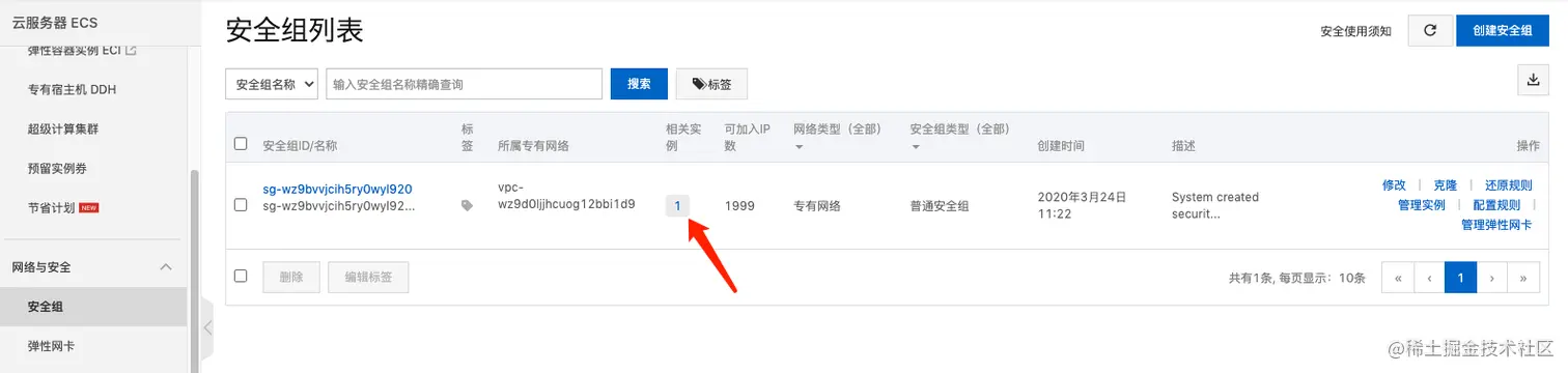 - 检查你的安全组是否关联相关实例