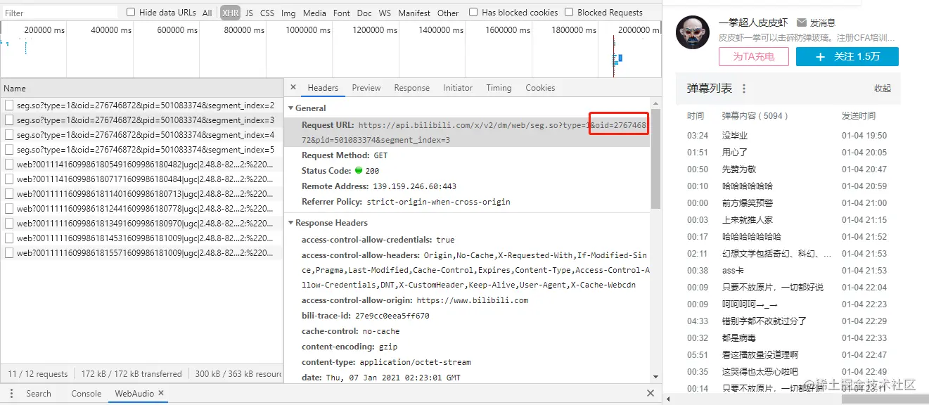 以前B站的弹幕很快可以通过抓包获取到,但是现在B站有了限制,就获取不到了,不过不用担心,我拿到以前的API接口依然是可以获取到B站弹幕的。
