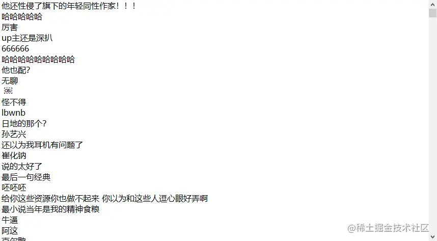 既然我们在上面所讲的内容是Beautiful Soup,那肯定是通过Beautiful Soup进行数据解析,文本内容保存下来。获取弹幕的写法肯定会有很多种,我在下面就先列出一种。