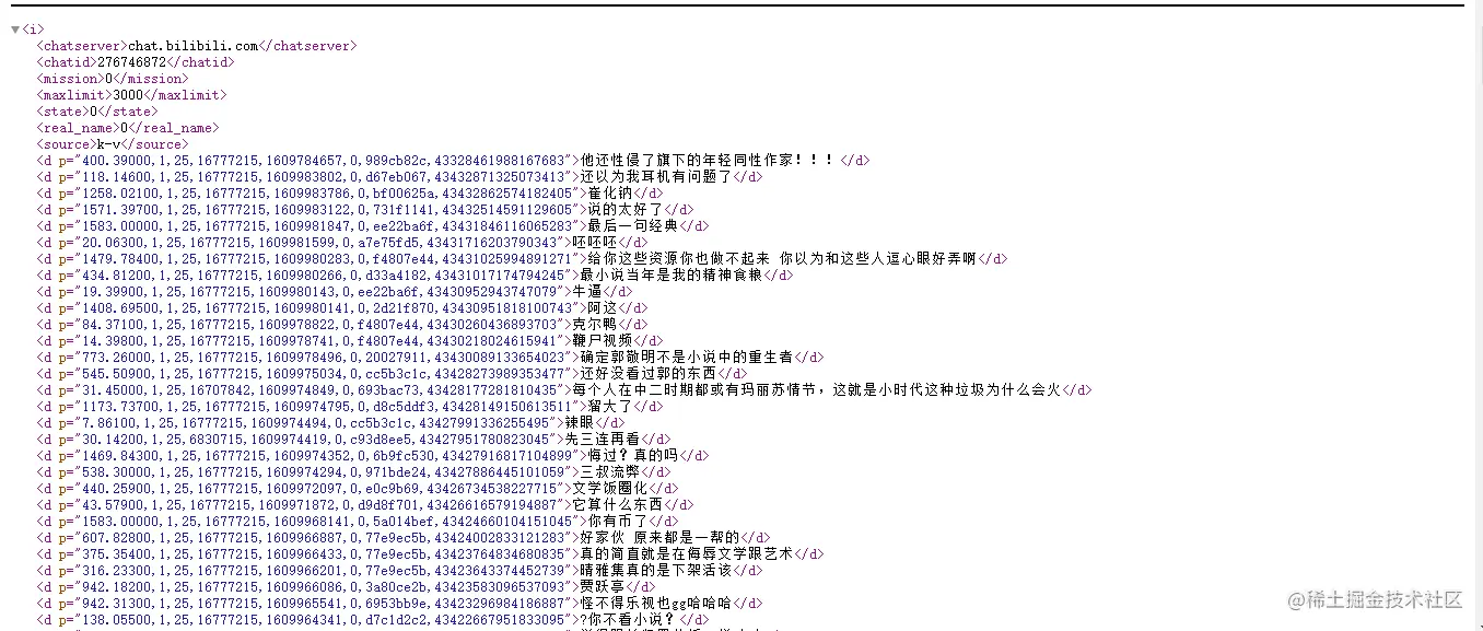 将上面的链接输入到浏览器就会可以看到弹幕信息了。