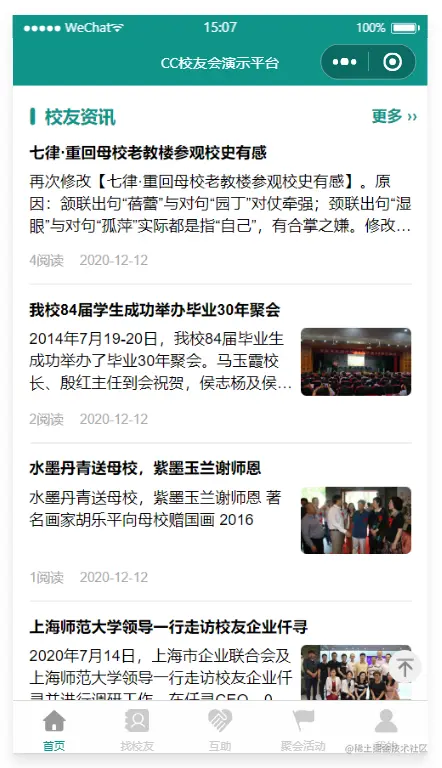 实现官方资讯、校友会动态、校园风采、公告通知等新闻发布功能,帮助校友及时有效的了解学校、校友组织及校友信息。