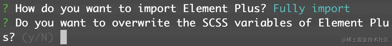 一路回车确认,Element Plus 就自动添加到项目里了。这样,使用了 Vue 3.0 + Element Plus 组件库的项目就完成搭建。