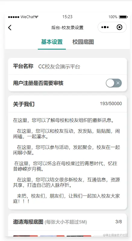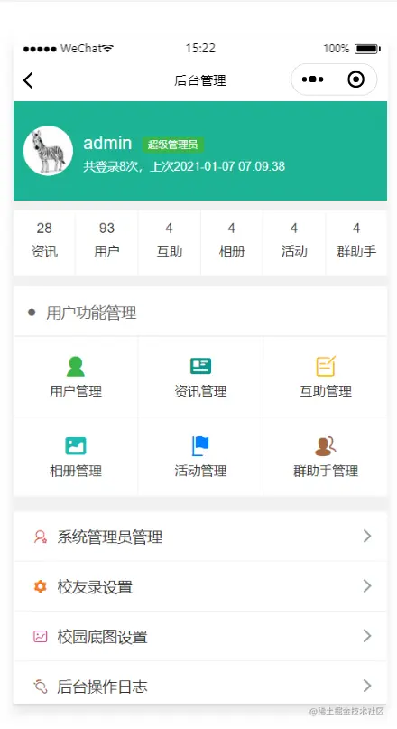 通过手机小程序,随时随地的管理校友录数据,审核用户,发布新资讯等。