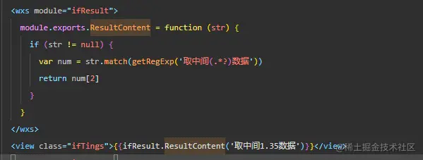 <view class="ifTings">{{ifResult.ResultContent('取中间1.35数据')}}</view>