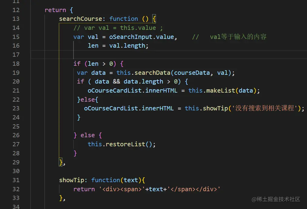 oCourseCardList.innerHTML = this.makeList(this.searchData(courseData, val)); //courseData是JSON数据
