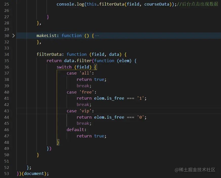 获取属性: 注意点:第19行的 tar.getAttribute('data-field'),能直接得出其存储的值(all、vip等)