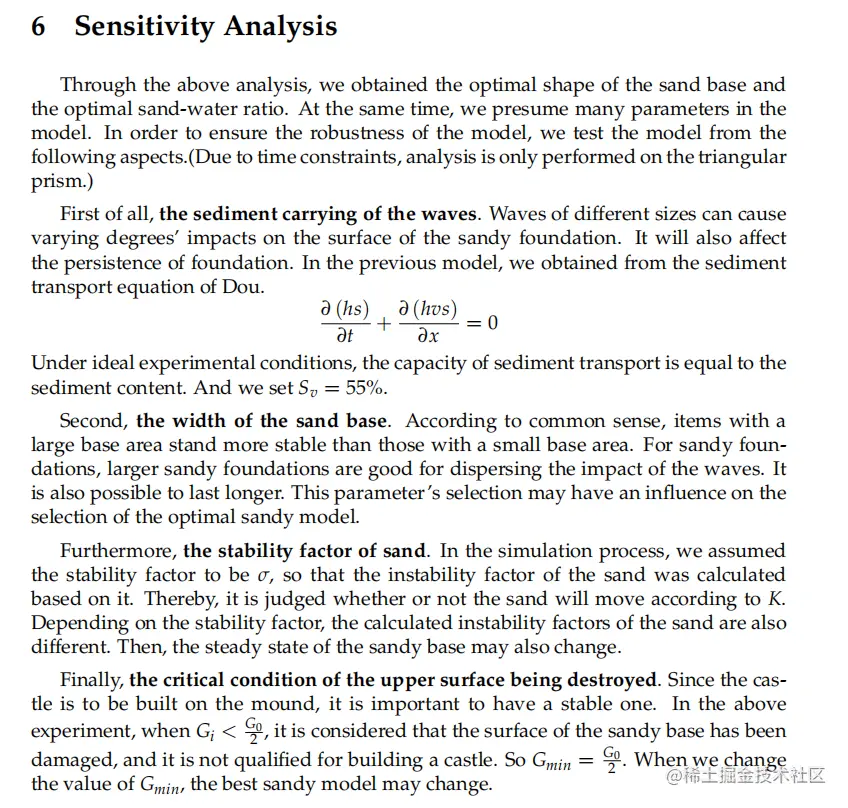 2020年B题特奖论文 《A Simulation Based Assessment of Sandcastle Foundation》 当中为了保证模型的鲁棒性,引入泥沙携带的波浪对模型变量的影响,最终分析并得出结论。