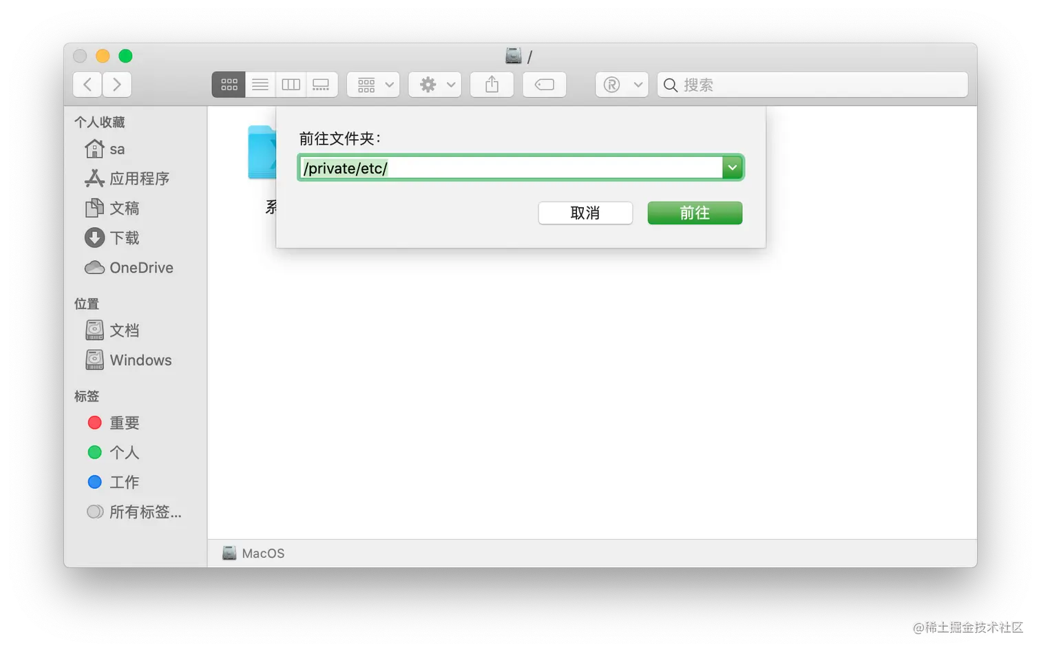 6. 打开访达,点击菜单栏中的前往-选择前往文件夹(或者按住command+shift+G),弹出来的窗口默认就是要去的路径