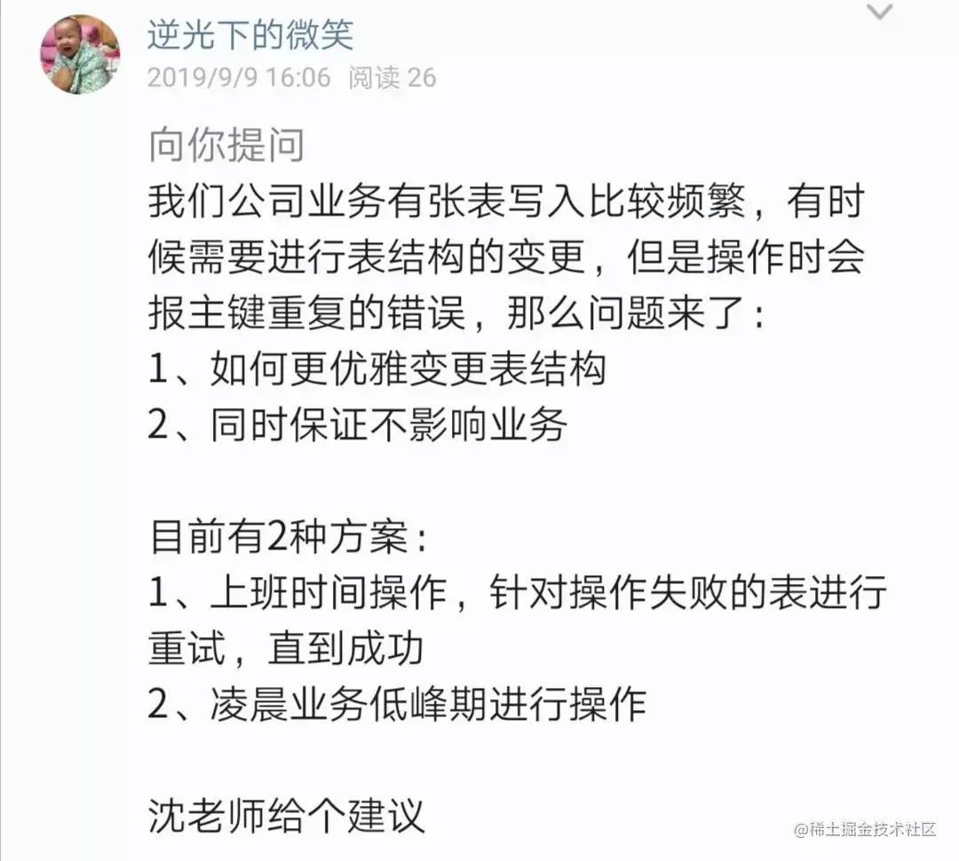 问题域:数据量大、并发量高场景,如何在流量低峰期,平滑实施表结构变更?