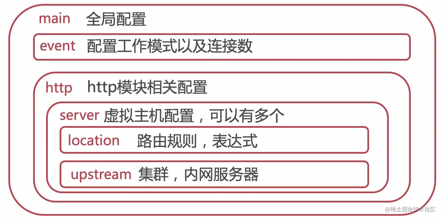 - worker进程:工作进程,默认一个,可在nginx.conf中配置多个