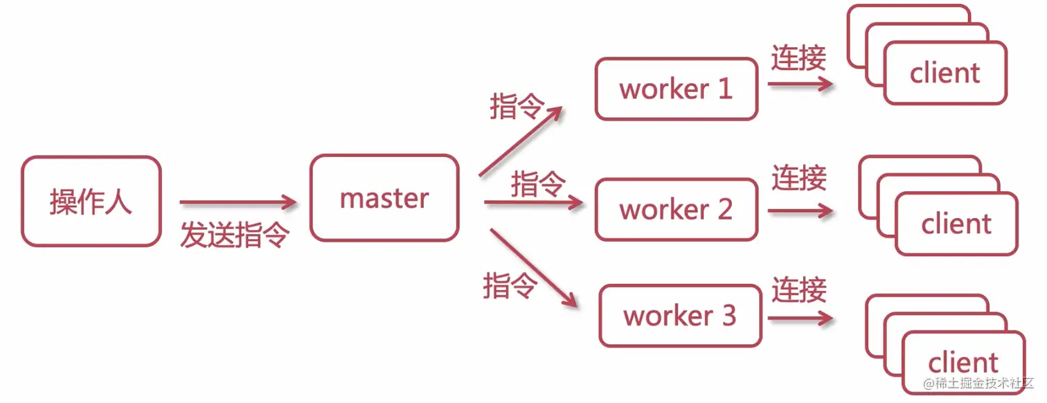 信号(如 ./nginx -s reload)发送到主进程,主进程分配给工作进程,实际执行的是工作进程。