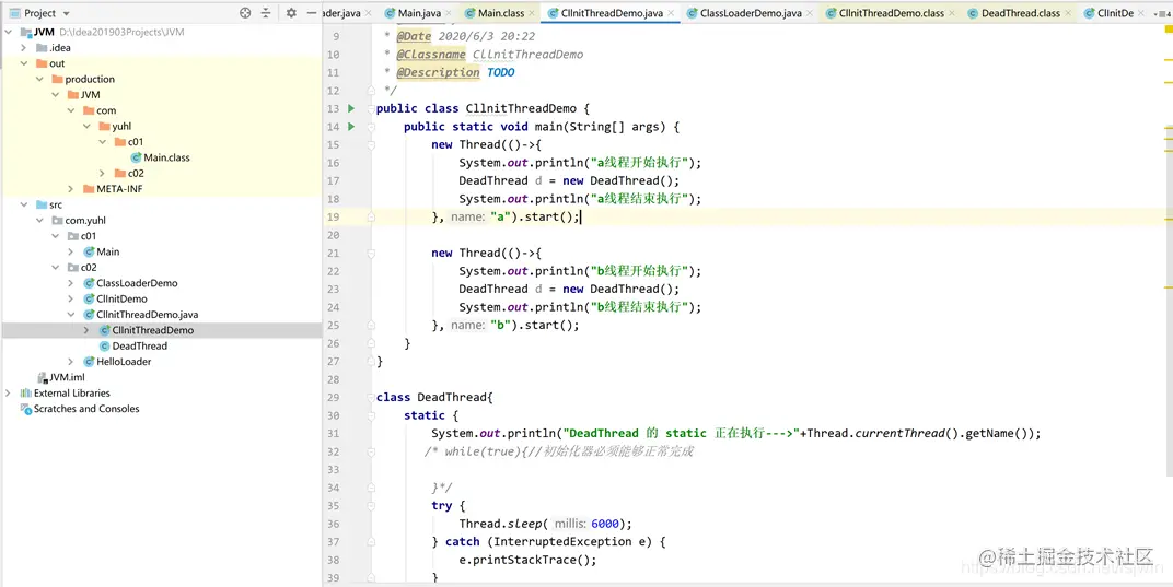 虚拟机必须保证一个类的 () 方法在多线程下被同步加锁。