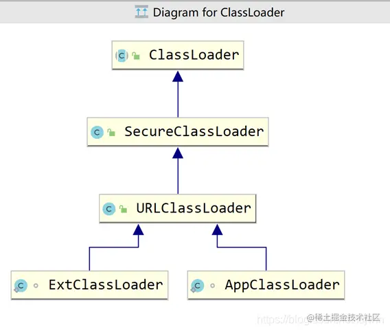 - ExtClassLoader 和 ApppClassLoader 均为 ClassLoader 类的的派生类