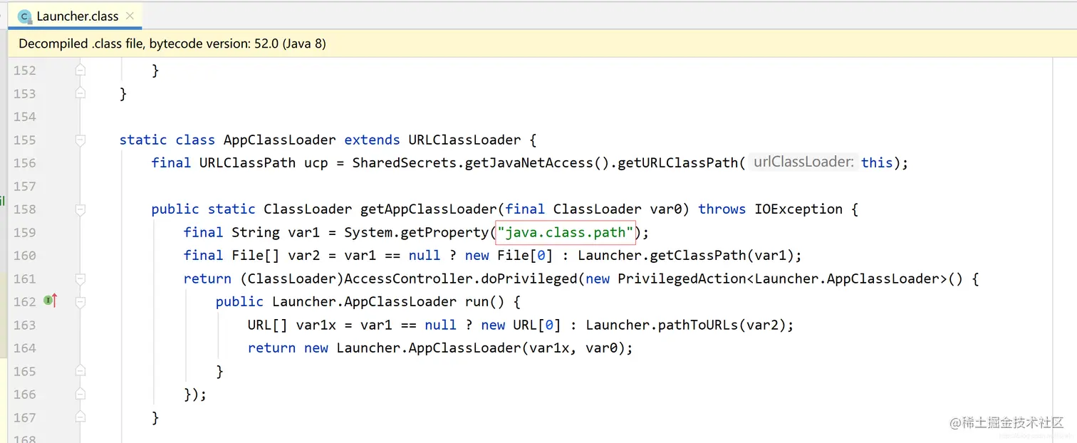 - 第一次拿到的时候需要给自己的爸爸,当然了 bootstrapClassLoader 没有爸爸,就是第一次拿到的时候了。