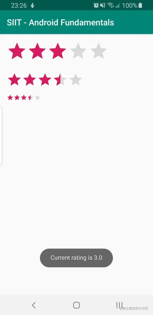 根据官方文档,Rating Bar是Seek Bar和ProgressBar的扩展,显示星级。
