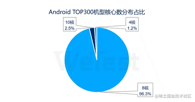 通过白皮书,我们观察到,在2020年统计的 Android TOP300机型不同内存分段用户覆盖人数占比中, 4G机型用户依然覆盖层面最广,6G以上用户整体占比达到50.1%。同样在TOP300机型中4G内存的机型数仍保持较高比例,但有所下滑,占比32.2%(去年占比37.94 %),主要原因是更高规格的内存机型占比提升较大,6G以上机型占比已经高达45.9%,成为新的主流。