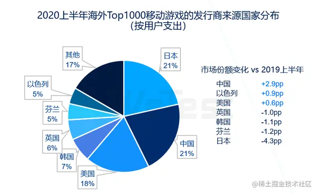 在出海专题报告中,我们可以看到不少关于游戏出海的利好消息。2020年上半年,中国自主研发游戏在海外市场的实际销售收入达75.89亿美元,同比增长36.32%,增幅高于国内市场。中国出海移动游戏的用户支出占海外移动游戏市场的份额为21%,保持强劲态势,已经与美日韩共同形成了第一梯队。与此同时,游戏出海过程中产品研发、灰度测试、上架发行三大核心阶段所涉及的相关服务日趋完善。