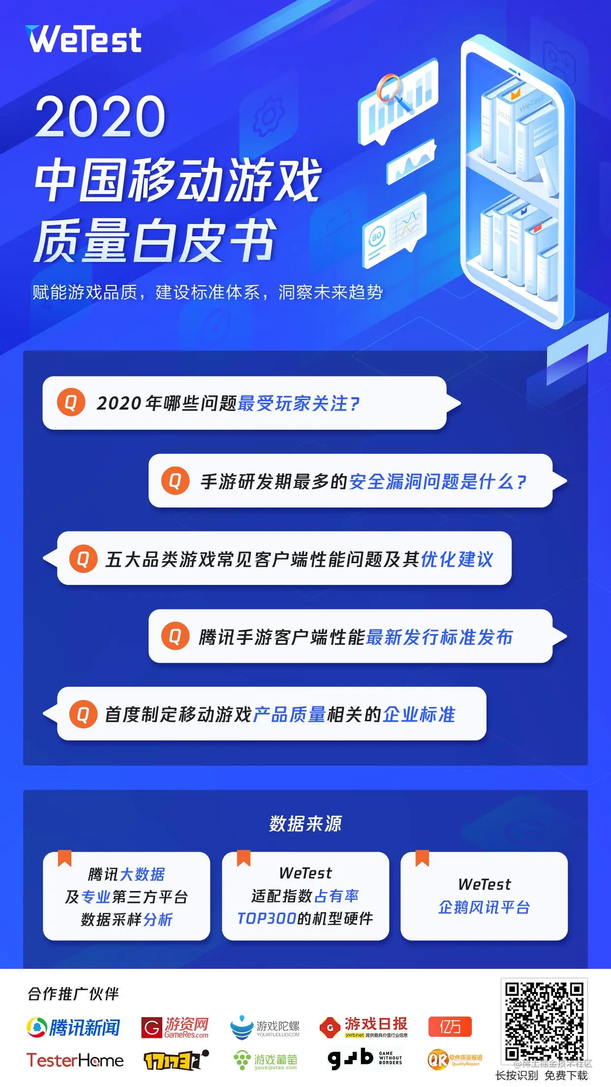 腾讯质量开放平台WeTest首度联合泰尔终端实验室联合发布的《2020移动游戏质量白皮书》完整版,可前往腾讯WeTest官方网站或腾讯WeTest公众号获取,也可直接点击链接下载wetest.qq.com/white-paper…