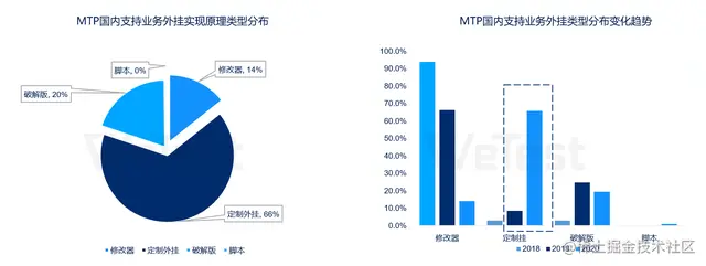 随着手游市场竞争日趋激烈,非正当获利在移动游戏领域屡见不鲜,外挂等安全性问题成了开发者们不得不面对的难题。《2020移动游戏质量白皮书》就全球范围内的外挂问题为从业者们敲响警钟:国内定制类外挂比例达到66%,较19年增长6.5倍。海外定制类外挂比例已经达到了62%,较2019年增长了足足3倍,尤其是强竞技游戏品类的外挂对抗挑战持续增大。