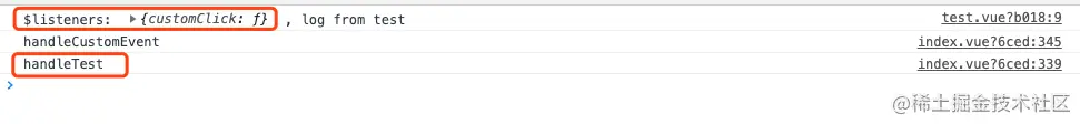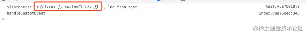 console.log('$listeners: ', this.$listeners, ' , log from test')