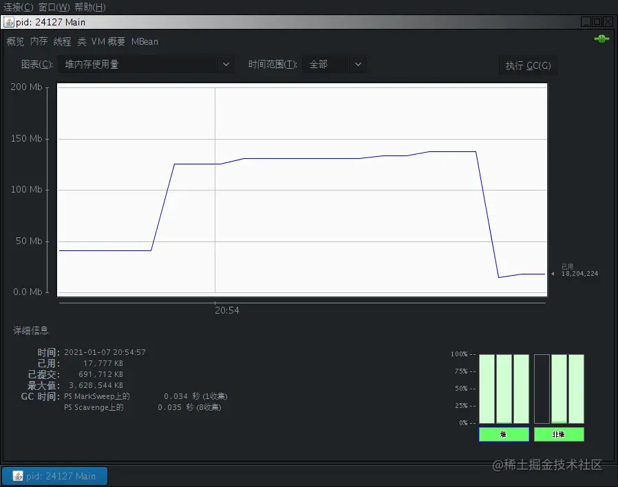 执行GC后降到17,777KB。