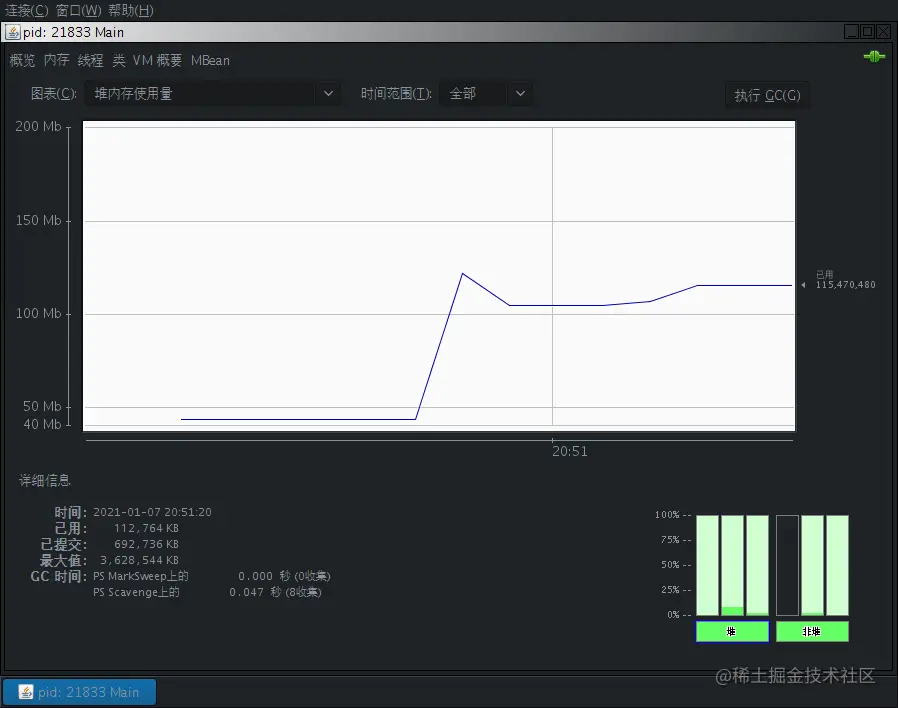 点击按钮等待输出完成后,内存停留在112,764KB。