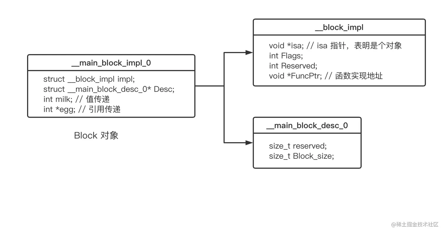 int milk; // milk 是 auto int 类型的局部变量,它会直接拷贝到block的内存结构中,相当于值拷贝