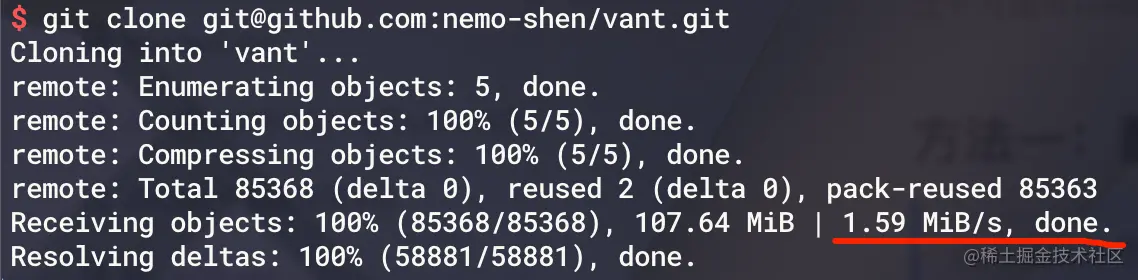 步骤三配置后,可以测试git clone 速度,如果已经加速表示成功,但是该方法将导致国内仓库无法下载,建议改成以下形式