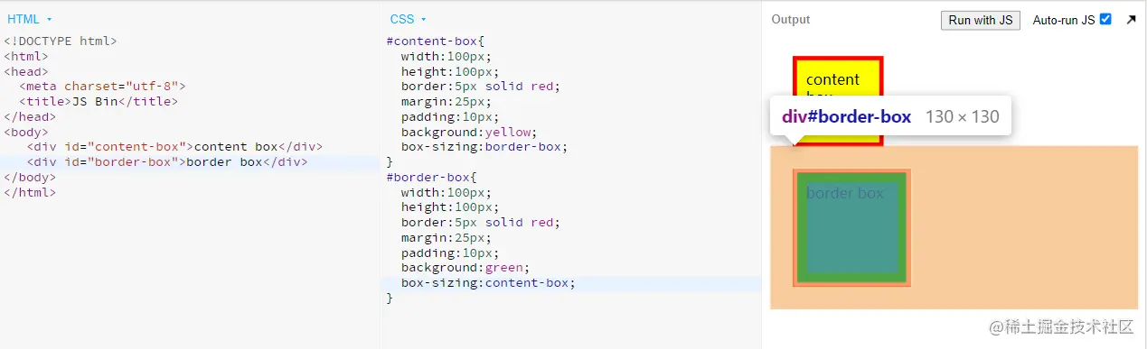 border-box的width是:内容宽度+padding+border,下图中的width是这么算的: