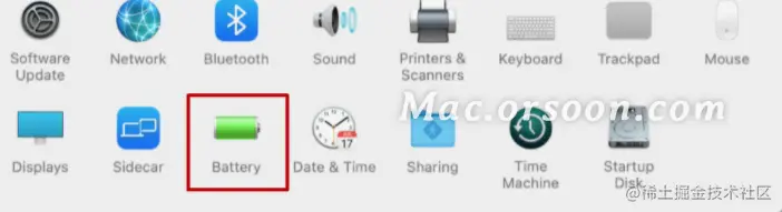 1.从苹果菜单中选取“系统偏好设置”,然后点按“电池”。