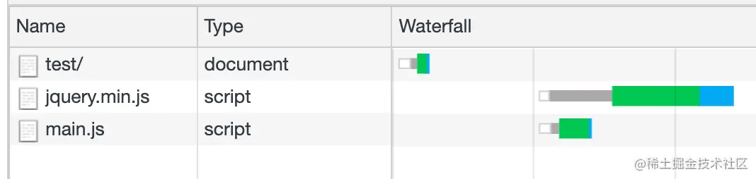 此时该页面的资源加载 Waterfall 长这样: