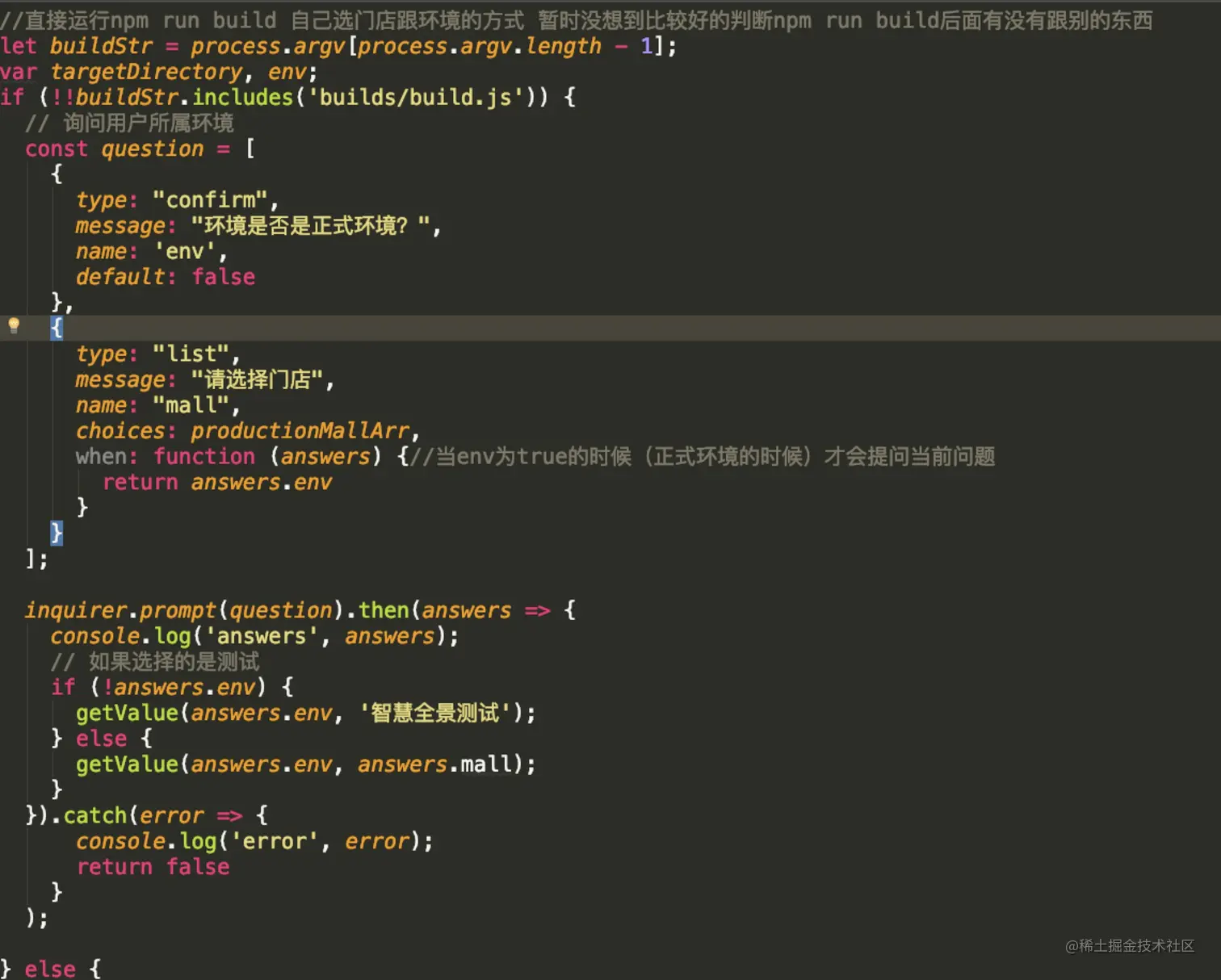 when: function (answers) {//当env为true的时候(正式环境的时候)才会提问当前问题
