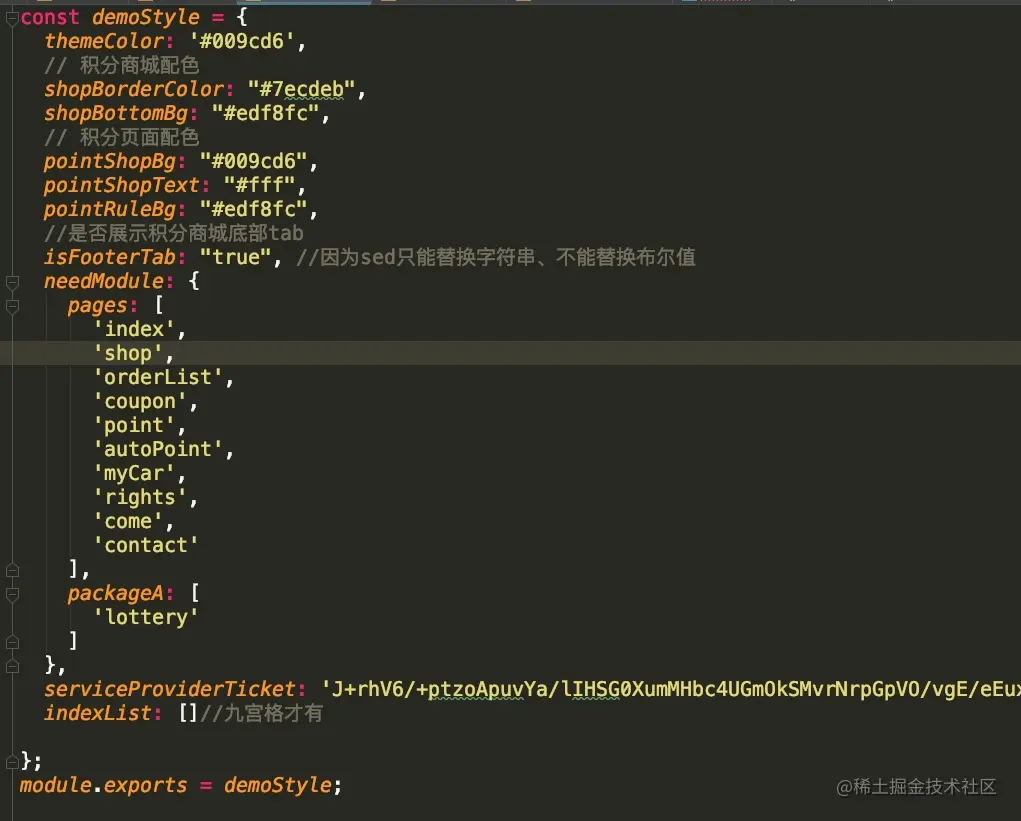 - config.js:用来存储各种背景颜色、配置项、需要的功能、票据等。