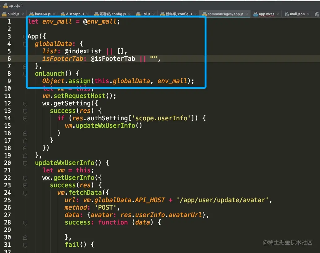 app.js:共用的app.js 包括全局的一些变量(门店信息、请求环境等)以及共用方法