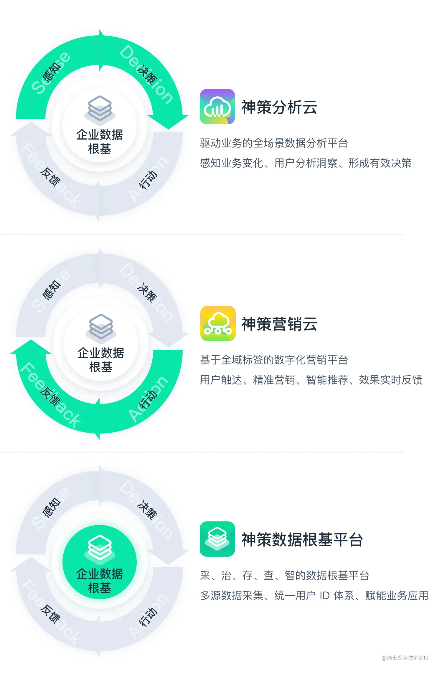 神策数据根基平台,是面向业务的全端数据基础平台。可实时采集、治理、存储、查询、展示数据,并搭载数据智能引擎,高效积累数据资产,赋能业务应用场景,助力企业构建扎实的数据根基,实现数字化经营。