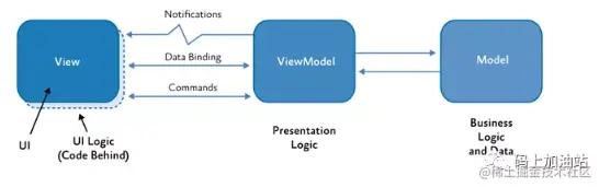 MVVM模式是指Model-View-ViewModel。相信看过笔者关于MVP的文章的读者也会发现,无论如何抽象化,在我们的View层中是无法避免的要处理一部分逻辑的。而MVVM模式中的View是将View的状态和行为完全抽象化,把逻辑与界面的控制完全交给ViewModel处理.