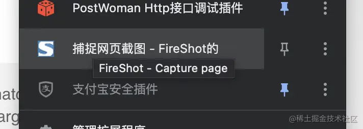 - 安装FireShot插件,安装完成插件列表会有个S的图标:
