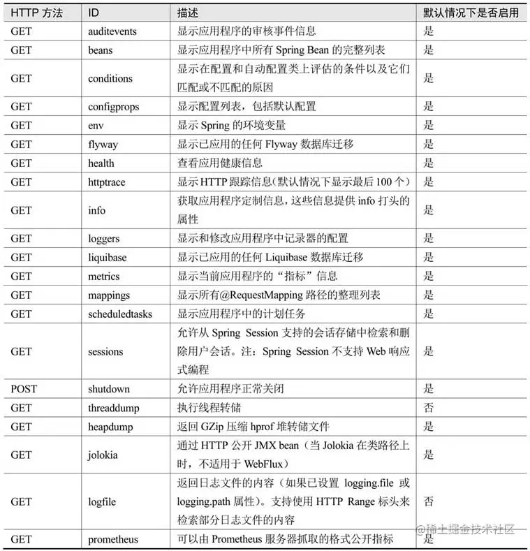 使用前缀/actuator加上端点ID来访问。例如,在默认情况下,health端点映射到/actuator/health。