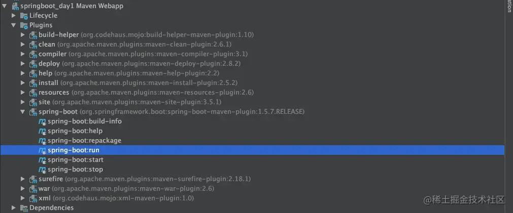 测试中项目名为: springboot