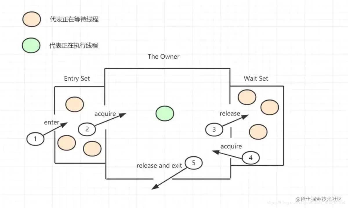当多个线程同时访问一段同步代码时,多个线程会先被存放在 EntryList 集合中,处于 block 状态的线程,都会被加入到该 列表。接下来当线程获取到对象的 Monitor时,Monitor 是依靠底层操作系统的 Mutex Lock 来实现互斥的,线程申请 Mutex 成功,则持有该 Mutex,其它线程将无法获取到该 Mutex。