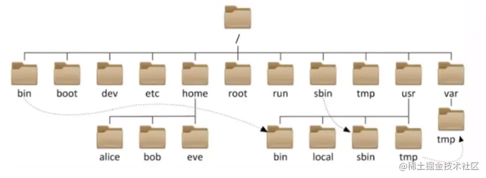 在Linux中,一切皆文件。所以,Linux和windows目录有很大的不同,它没有明确的盘符,它的目录就像一棵大树一样,顶层目录就是根目录:/,然后下面又有很多个分支,分支可以再分,从而形成一个庞大的文件系统,就像这样;