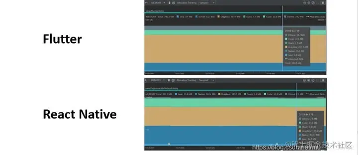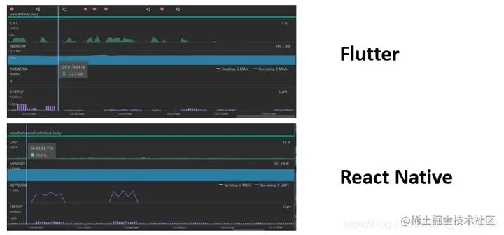 以上是同样功能模块下,Flutter 和 RN 的一些数据上的对比,是从众多的数据中抽取出来比较有代表性的一组。