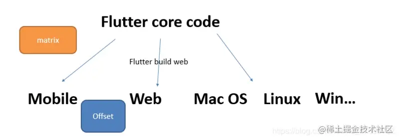 Flutter 的编译方式和产物是决定其高效运行效率的前提,不同于 web 的跨端编译一样(web 的跨端编译大多是选择了使用 "桥" 的概念来调用编译产物,通常是使用了原生端的入口 + web 端的桥来实现),Flutter 几乎是把 dart 的源码通过不同平台的编译原理生成各平台的产物,这种"去桥"的产物正式我们所希望得到的、贴近原生运行性能的编译产物(当然,在 dart 最初设计的时候,是参考了很多前端的结构来完成的,特别从语法上面能够很明显地感受到前端的痕迹,而且最初的 dart2js 的原理也是同样"桥"的概念)。